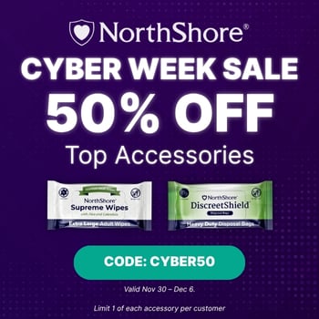 Celebrate Cyber Week with NorthShore – the trusted leader in premium protectionfor heavy incontinence. From November 30 through December 6, 2025, enjoy 50%off best-selling incontinence care essentials including Supreme Wipes, DiscreetShield Disposal Bags, Trifecta Waterproof Covers, and more!