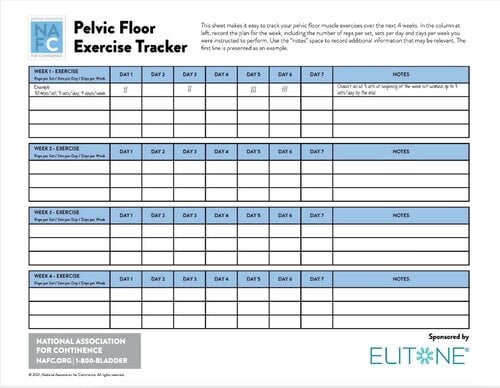 ELITONE is available for purchase without a prescription, however, private insurance groups may cover it with a prescription from your treating physician. Ask your insurance provider whether they cover “non-implanted pelvic floor electrical stimulators” HCPCS/DME code E0740. Medicare coverage includes renting the device for a time with some out-of-pocket expense, again with a physician’s prescription. (Note: Some insurance companies require patients to have tried Kegels on their own first, prior to covering the cost for a device. Click here to download NAFC’s pelvic floor exercise tracker, which can help you document your efforts.)